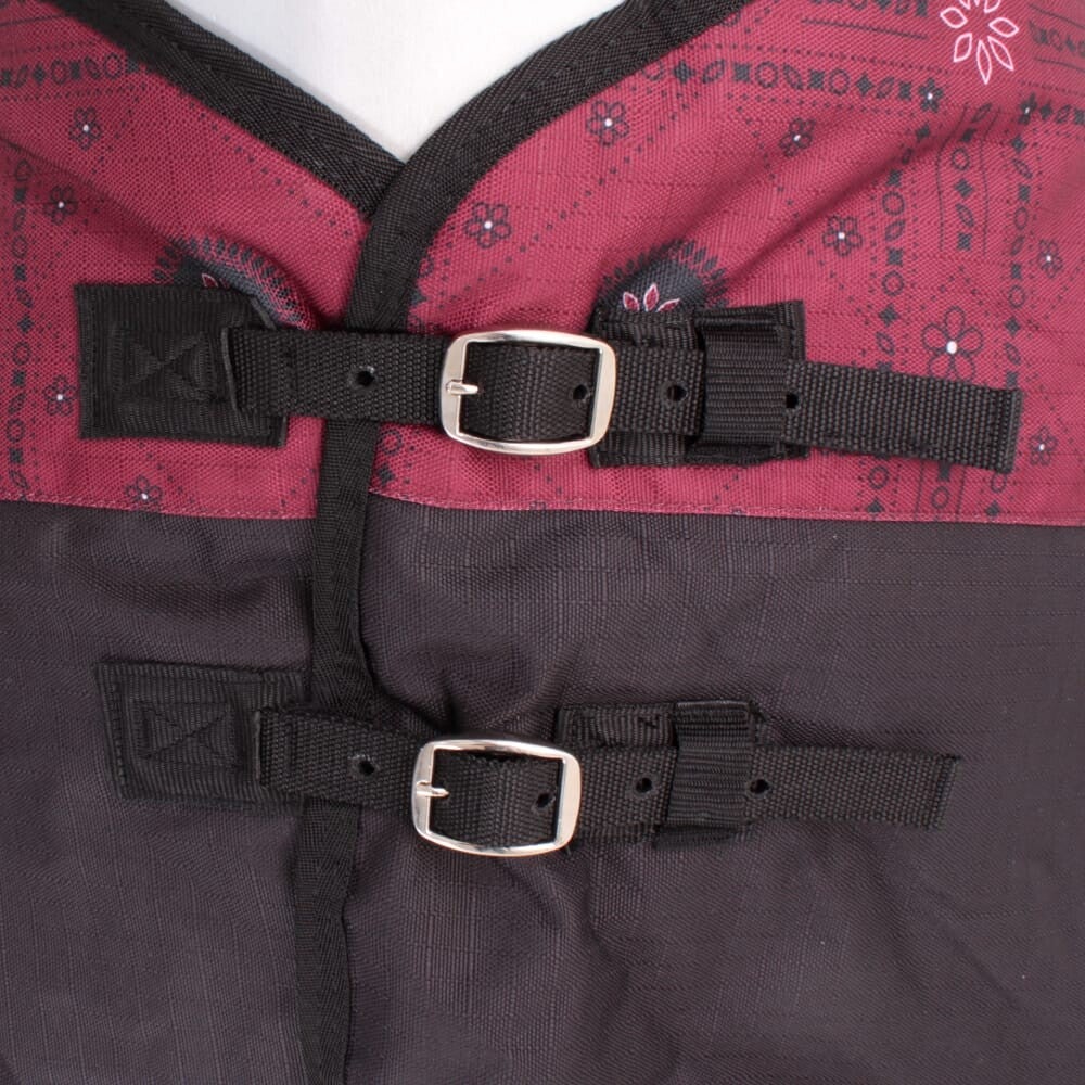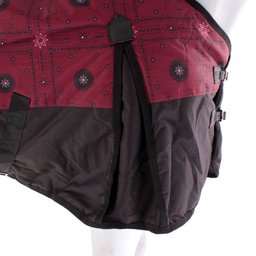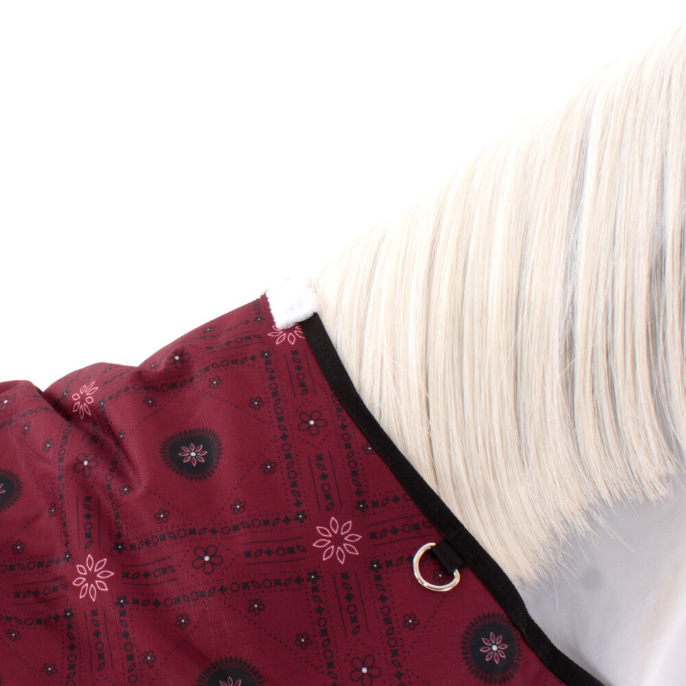 Deze warme winterdeken van Weatherbeeta in leuke Burgundy Bandana Print/Black beschermt je paard tegen de ergste kou deze winter! De deken is gemaakt van het extra sterke 1200D ripstop polyester buitenstof en een polyester voering. Heeft standaard een 220g vulling en een grote loopsplit voor extra bewegingsruimte.